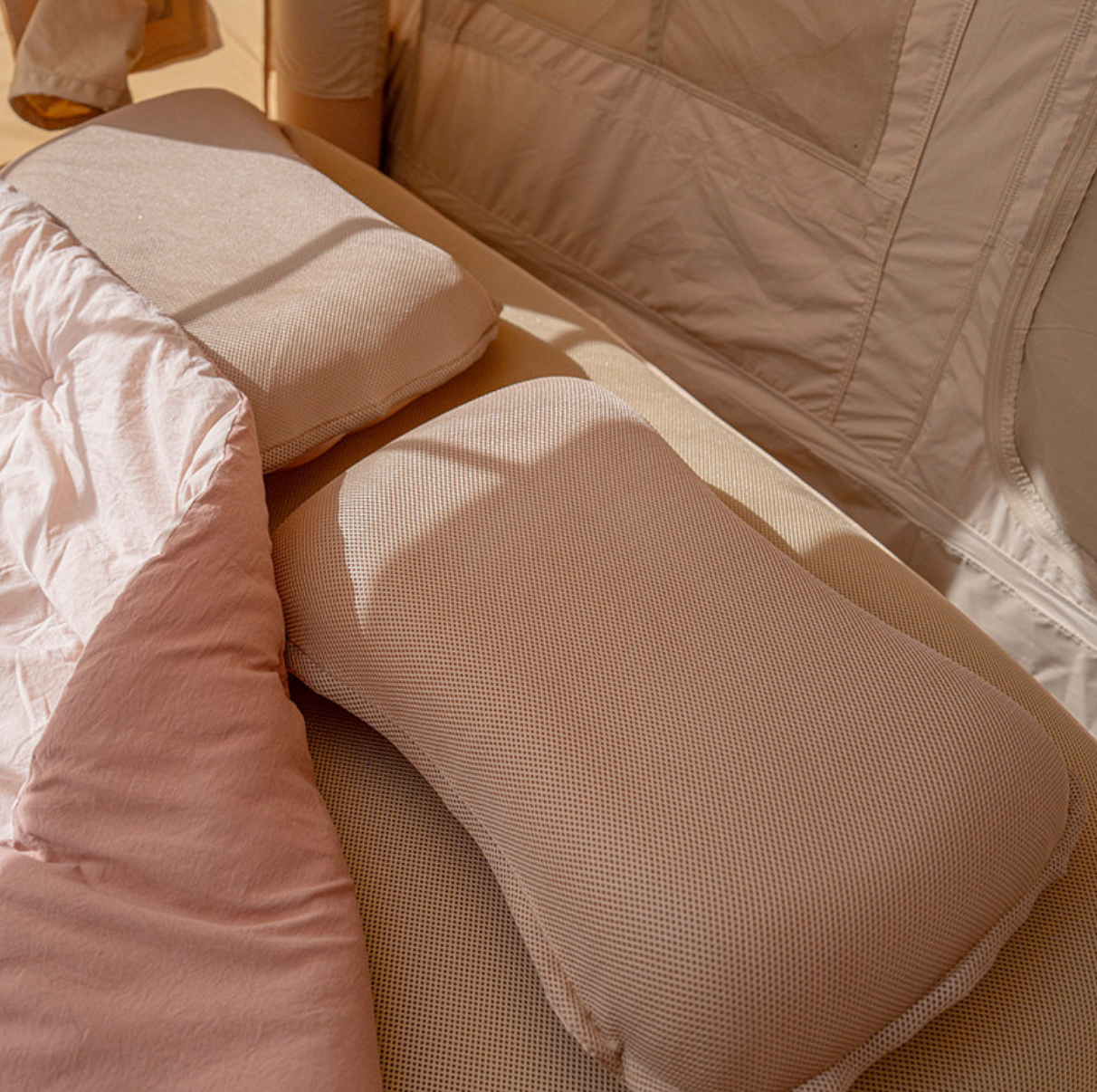 空気の注入が簡単で、手軽に折りたたんで持ち運べるエアピロー。どこでも活躍する便利なアイテムです。