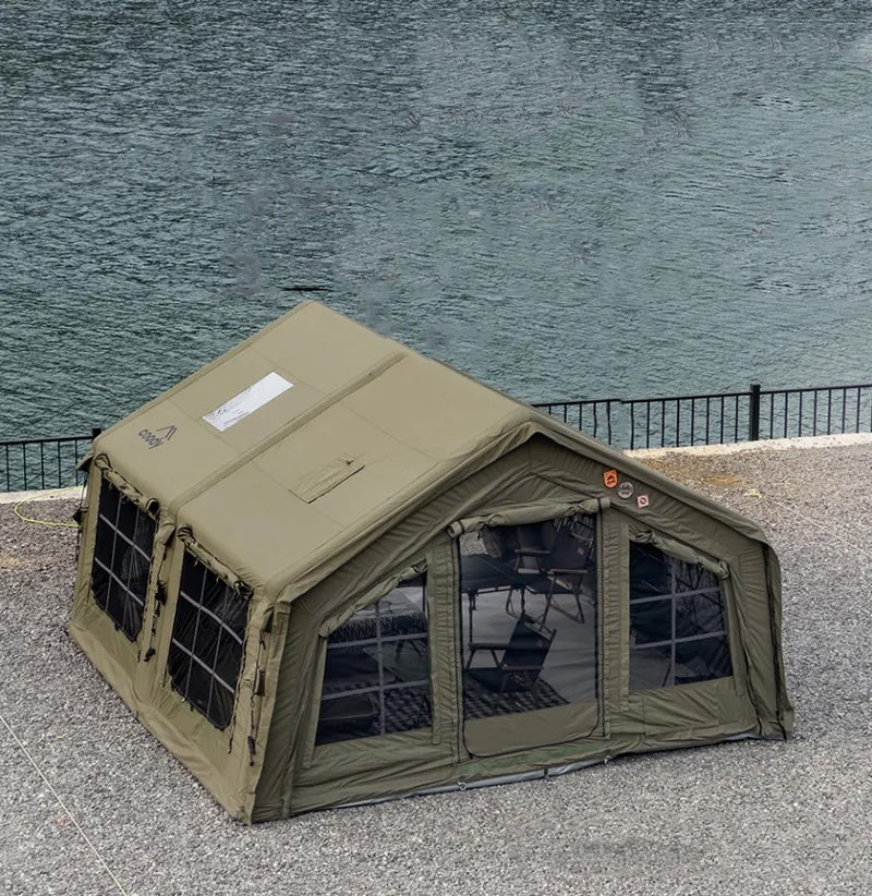 エアテント、フライシート、基本ドア、TPUドア、メッシュドア、TPUウィンドウ、スチールペグ、張り網、手動ポンプ、テント専用バッグ